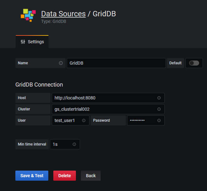 Once accessible, you can simply add the GridDB Grafana Plugin to be able to use the GridDB Web API as a data source.