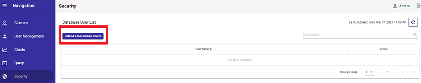 Before you can load data into your cloud instance, you must create a database user. To do so, click on the security tab and click Create Database User. This user (along with its credentials) will be used when communicating with the cloud instance.