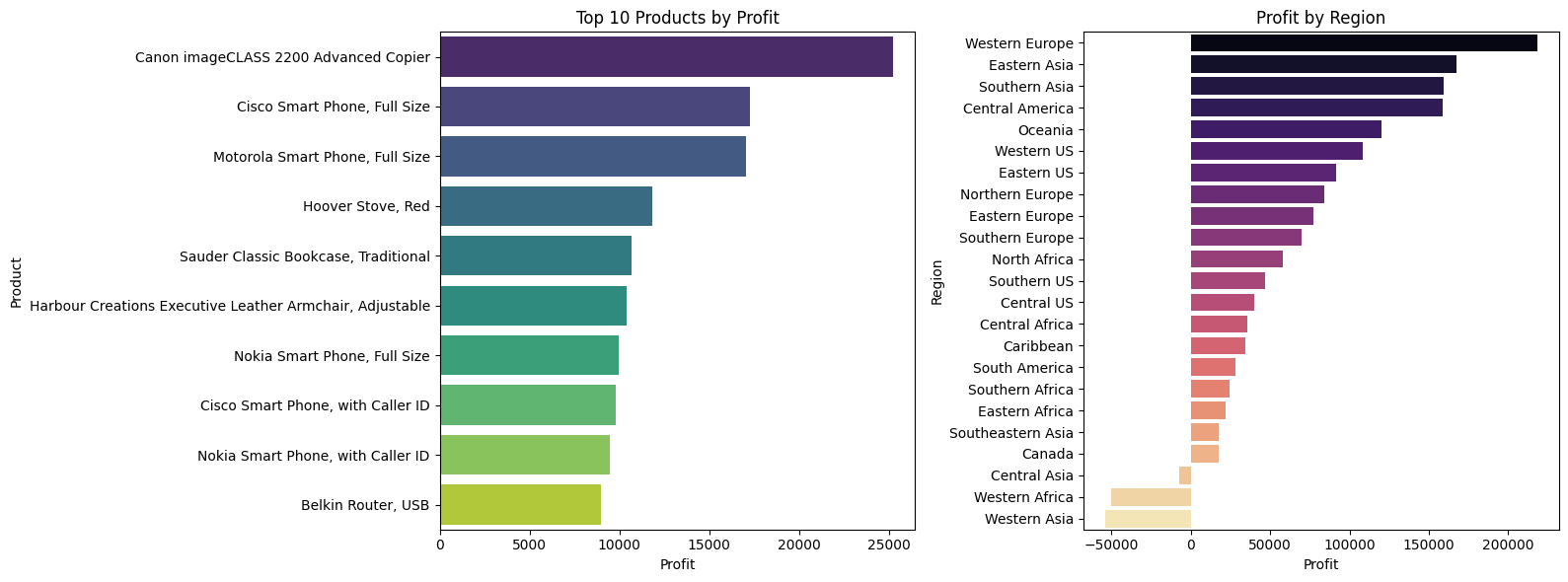 axes[0].set_title("Top 10 Products by Profit")
