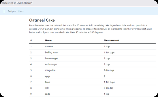 This table will store information about each recipe, including its unique identifier, name, and measurement.