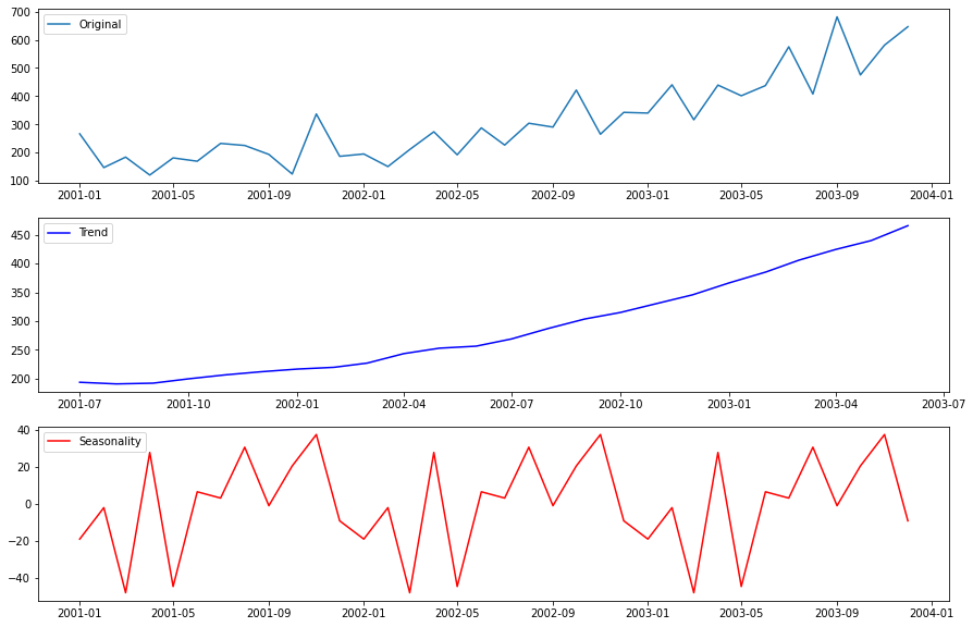 We can see that there is a year over year increase in shampoo sales, so there is a clear increasing trend in the data. We also note that the highest sales in each year are consistently around November. This indicates there is some seasonality in the datasets well.