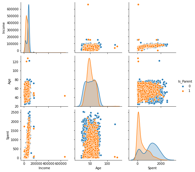 To_Plot = [ "Income", "Age", "Spent", "Is_Parent"]