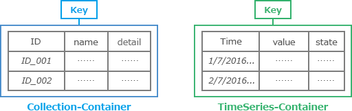 GridDB is tailored for IoT data by using a key-container model of storing and accessing data. In many IoT applications, many devices report data very frequently and have timestamps associated with them. GridDB provides a TimeSeries container that can handle timestamp data that arrive at high rates. TimeSeries containers provide aggregation and sampling functions along with data compression as a way to save storage space.