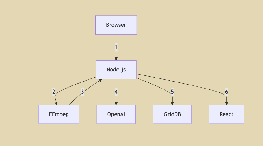 - Metadata Storage: Node.js stores the video metadata and AI-generated content in GridDB.