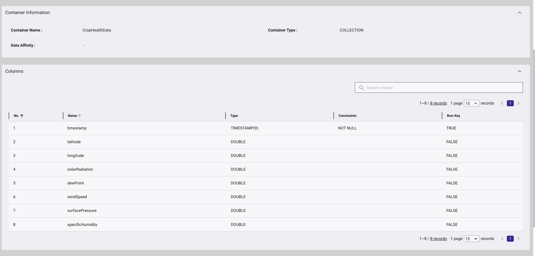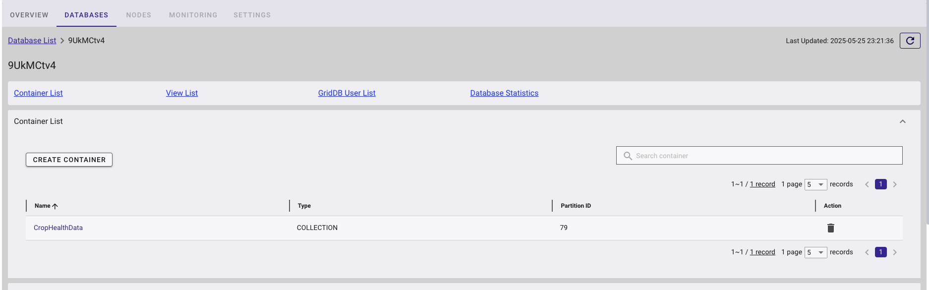 GridDB’s specialized time-series architecture addresses these challenges through efficient storage, high-speed ingestion, and optimized query performance for temporal data patterns. Its ability to handle mixed-frequency sensor data—from hourly weather readings to daily satellite imagery—makes it particularly well-suited for agricultural monitoring systems.