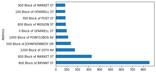 n_largest = Theft_address['NumOfIncidents'].nlargest(n=10)