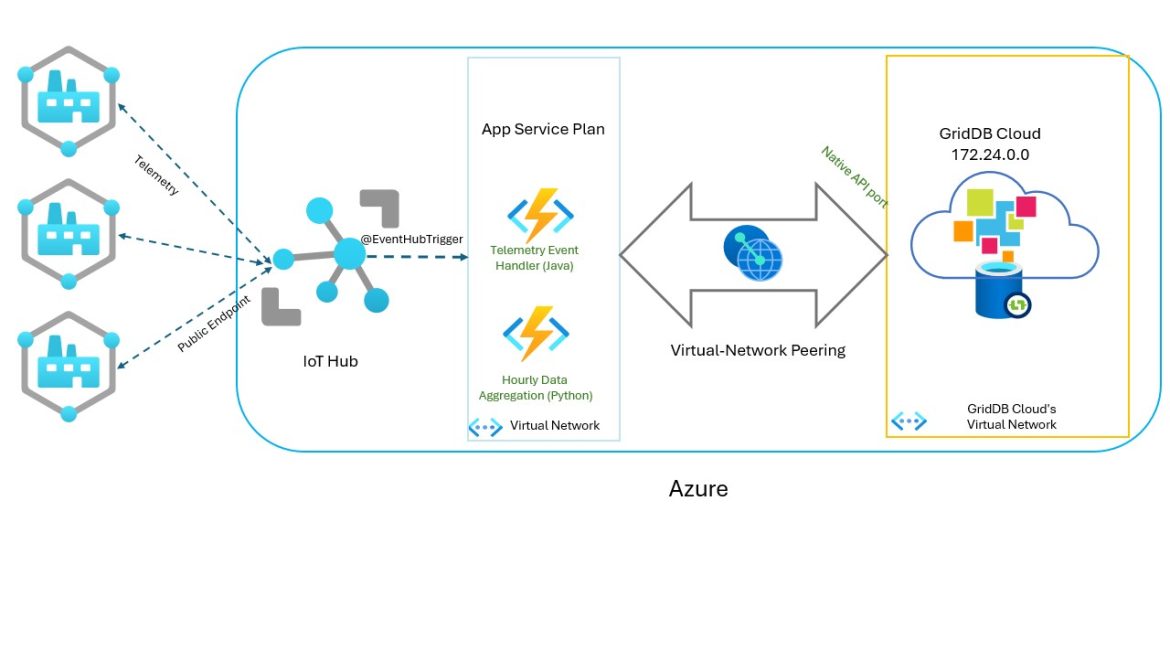 In this article, we will explore connecting our GridDB Cloud instance to Azure’s IoT Hub to store telemetry data. We have previously made a web course on how to set up the Azure IoT Hub with GridDB Cloud but through the Web API. That can be found here: https://www.udemy.com/course/griddb-and-azure-iot-hub/?srsltid=AfmBOopFTwFHI7OvQOEXt4P_cWxuo3NaJ9XkbNDHHWX5Tgky4QZzJlD3. You can also learn about how to connect your GridDB Cloud instance to your Azure virtual network through the v-net peering here: https://griddb.net/en/blog/griddb-cloud-v3-1-how-to-use-the-native-apis-with-azures-vnet-peering/.