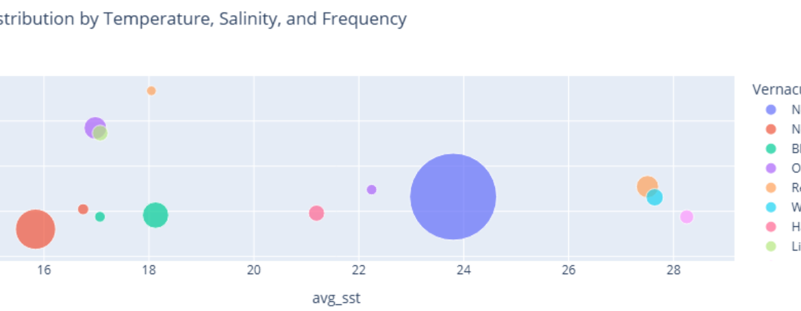 title="Species Distribution by Temperature, Salinity, and Frequency",